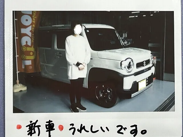 今回はご縁があり当社にてセブンマックスでのご契約本当にありがとうございました。スズキで幅広い層からご好評頂いておりますハスラー、M様のお眼鏡にかない⁉大変うれしく思っております。車高が高く、乗り降りしやすい上に思ったより広い!とのお声の通り普段使いには人も荷物も申し分なく、使い勝手のいい収納等もあり、そして何よりアウトドアっぽいたのもしさにキュートなマスクで女性からはもちろん、男性からも大人気のクルマです。これからのカーライフを大いに楽しんで下さいませ。メンテナンスはお任せ下さい!まずは7年間どうぞよろしくお願い致します。